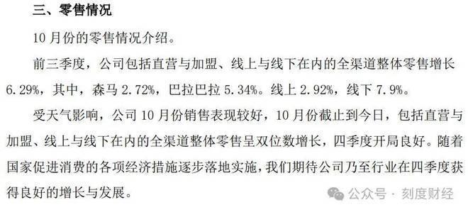 渠道优化后作用在品牌身上得到的成果是,巴拉巴拉、森马品牌零售额分别同比增长5.34%和2.72%。